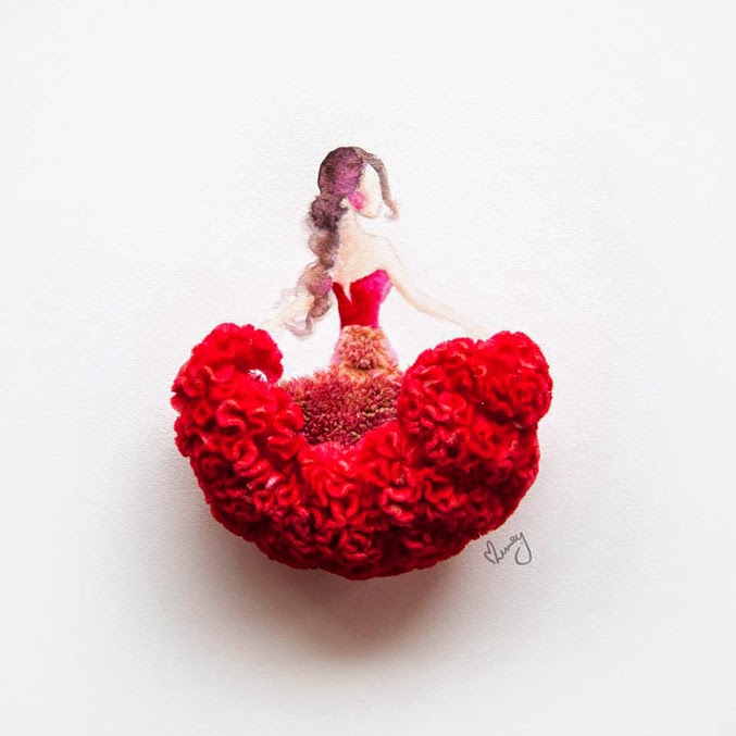 Nhiếp ảnh gia người Malaysian Lim Zhi Wei đã tạo ra những bức tranh bằng màu nước có tựa để "Nàng hoa" - những cô gái tao nhã hay quyến rũ trong những bộ váy đáng yêu làm bằng những bông hoa thật được thiết kế một cách khéo léo và vô cùng tinh tế, giống như chính bản năng của người phụ nữ.